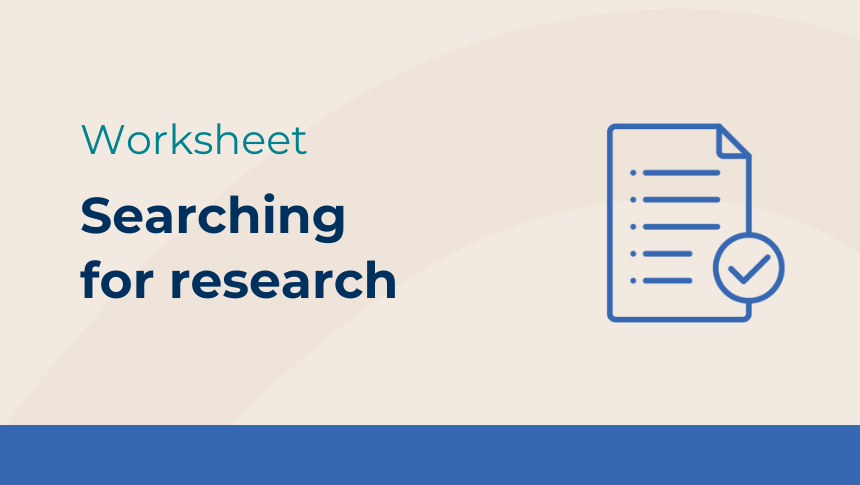 This worksheet is designed to help teachers, educators and leaders use online and library search tools to locate rigorous and relevant research evidence on new and effective approaches to inform their practice.